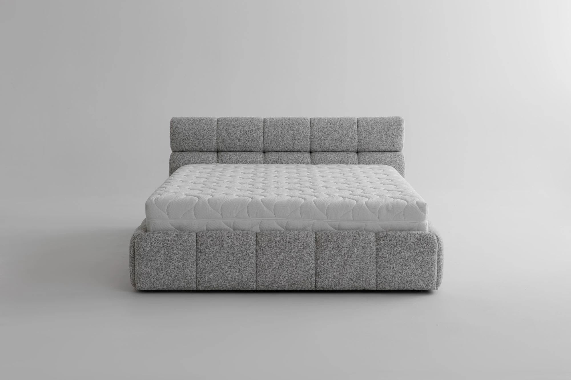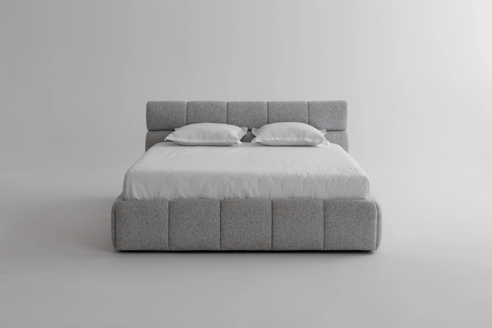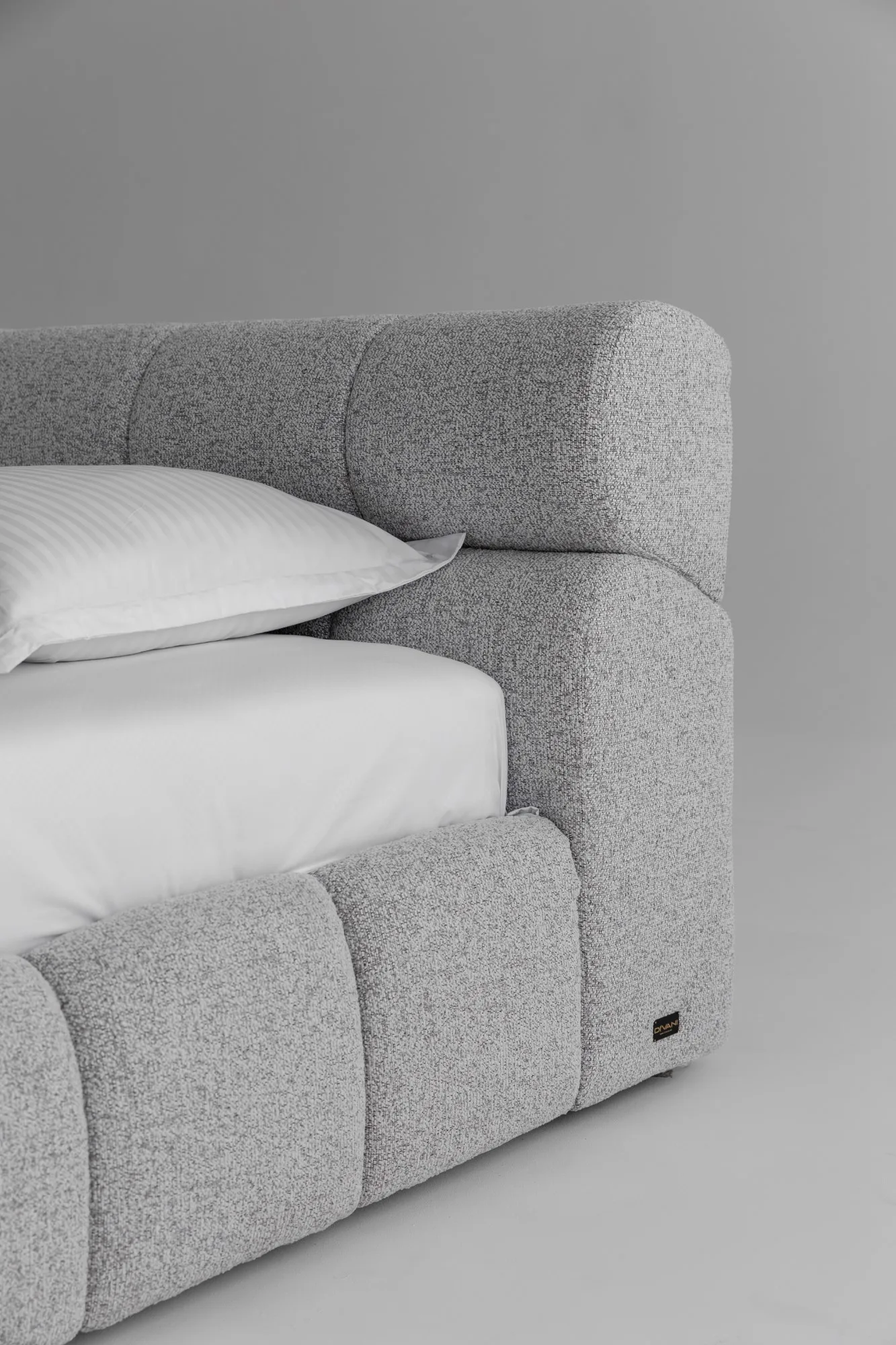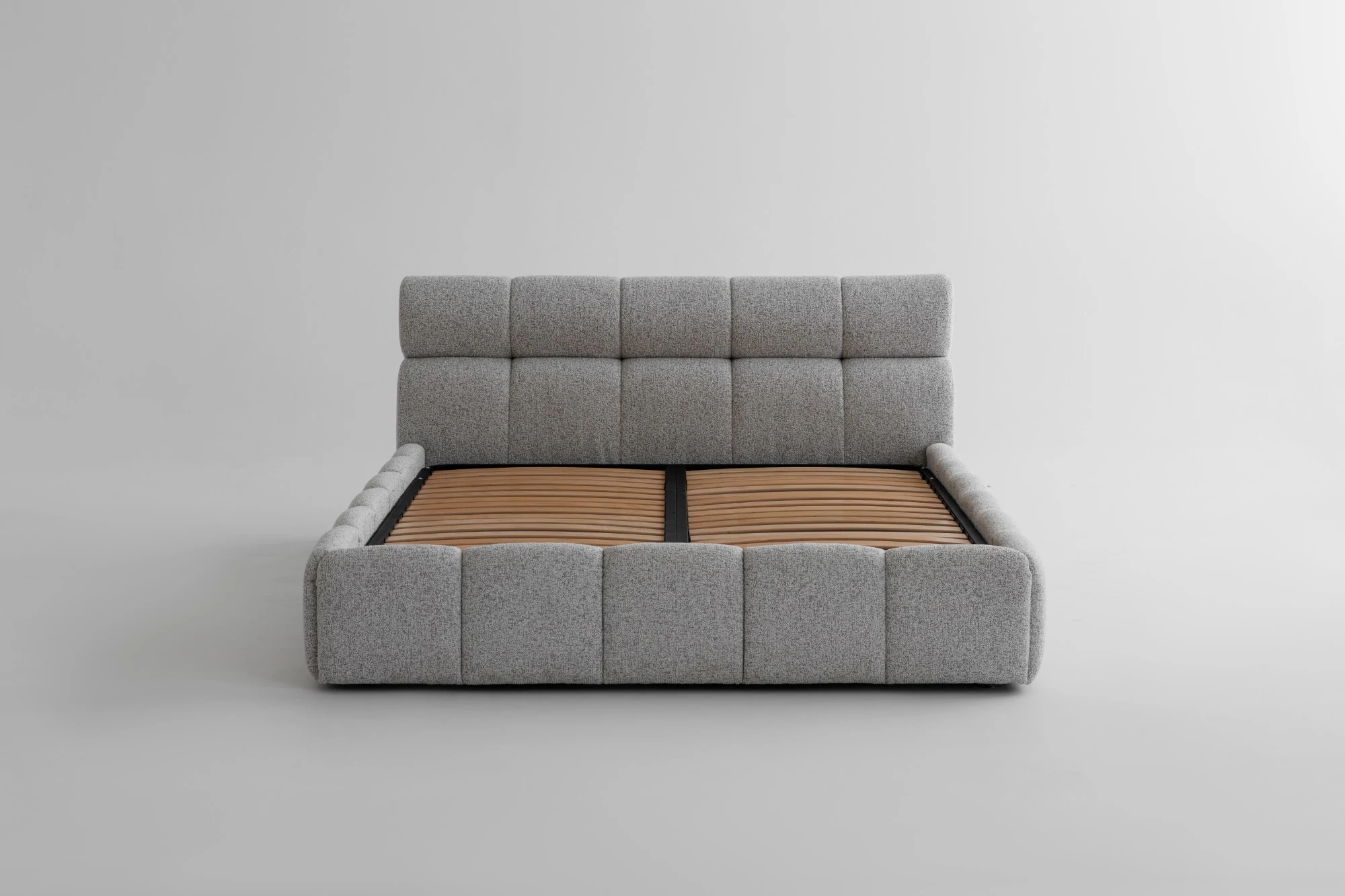 Patul Hamilton impresionează prin designul său distinctiv, caracterizat de panouri verticale capitonate care decorează atât tăblia, cât și cadrul patului. Această estetică adaugă textură și un farmec vizual deosebit. Întreaga piesă este tapițată cu o stofă premium de înaltă calitate, a cărei nuanță neutră de gri se integrează cu ușurință în orice paletă cromatică, aducând un aer de rafinament subtil.