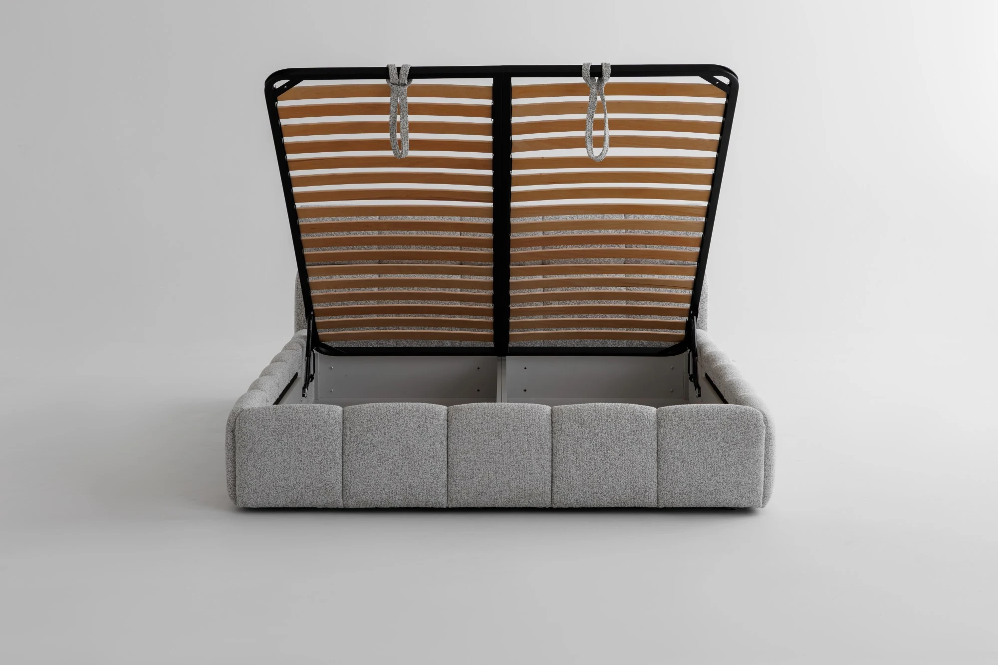 Proiectat pentru viața modernă, patul Hamilton este mai mult decât o piesă de mobilier elegantă – este o soluție inteligentă de optimizare a spațiului. Elementul său central este lada de depozitare generoasă, ascunsă discret sub întreaga suprafață a saltelei.